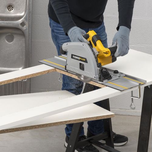 חיתוכים טבולים או חיתוכים ישרים ומדויקים: מסור הטבילה (plunge saw) של Powerplus מסוגל לבצע את כל אלו. מסור טבילה חזק עם דיסק בקוטר 165 מ"מ, אידיאלי לפרויקטי ניסור כבדים יותר.